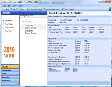 The 2010 payroll software also brings support for state payroll tax reporting for a number of states including California, Texas, Illinois and New York. State disability insurance tax is now a built-in tax category in the product.