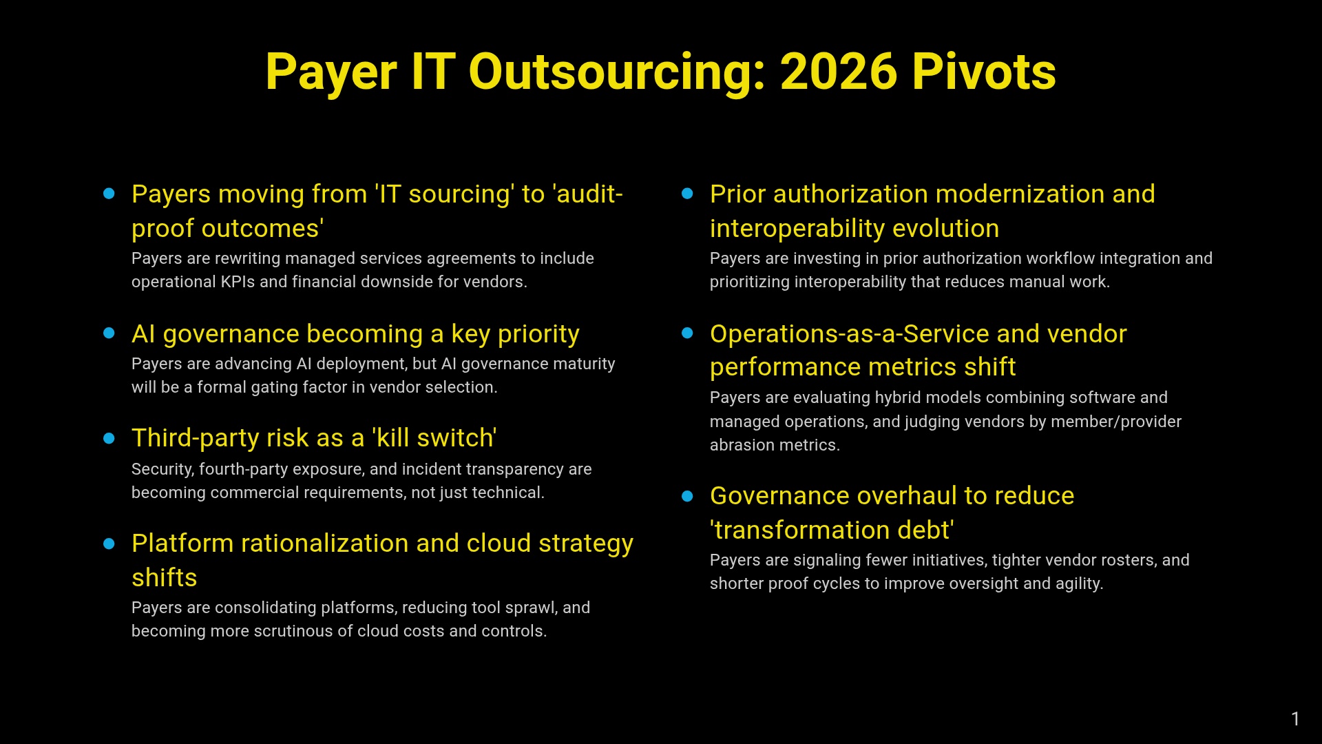2026 Payer IT Outsourcing Outlook: Outcome-Based Managed Services, Production-Grade GenAI Governance, and Vendor-Risk Enforcement