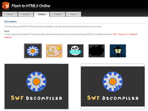 Now, this tool is available on Flash-to-Html5 Online, users can experience this free online solution to check how easy the conversion goes. Besides, there is an installable version of this tool which is called Sothink SWF Decompiler. It is not only functional in conversion, but also specialized in flash decompiling. Please check here for more information.