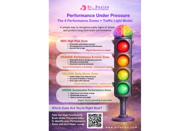 "This model helps people see what is happening in their brain under pressure," Dr. Rozina explained. "When individuals recognize early strain, they can intervene earlier and protect their well-being."