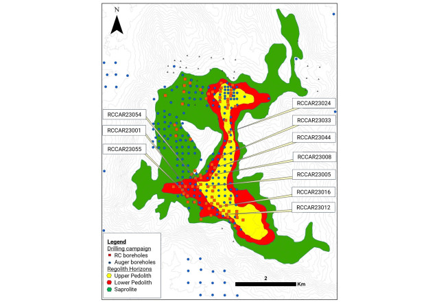 A total of 1,998 meters of drilling within 80 RC drill holes was carried out from November 2023 to April 2024 as part of an exploration drilling campaign covering approximately 700 hectares within the area of the Carina Module (see Figures 1, 2, 3 and 4 below). The primary objectives of the drilling initiative were to: