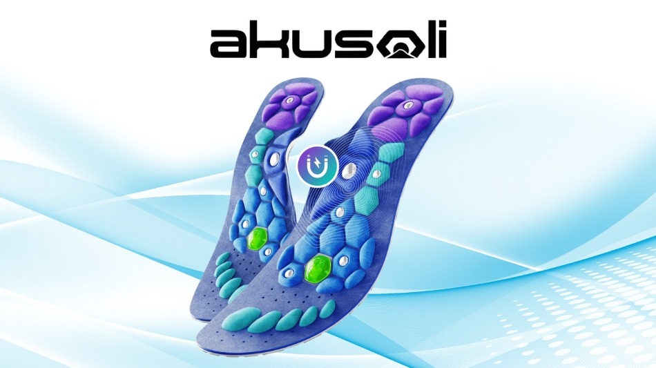 The brand states that Akusoli insoles feature strategically placed magnets designed to provide what they describe as targeted pressure point stimulation during wear.