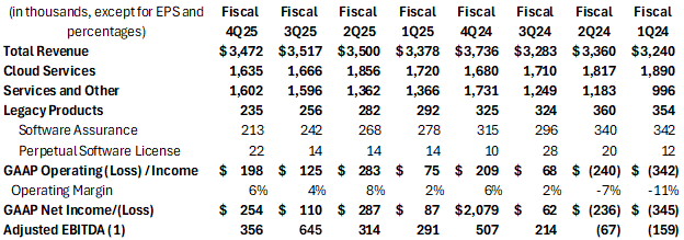 Cloud services revenue was $6.9 million, compared with $7.1 million;