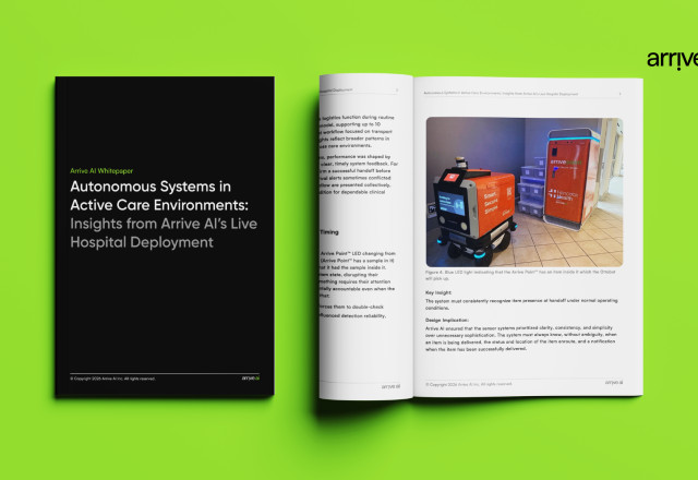 "During this initial deployment with Hancock Health, our Arrive Points™ enabled secure, asynchronous handoffs that fit naturally into existing hospital workflows, reducing walking time without adding extra steps for staff," said Dan O'Toole, CEO of Arrive AI. "The white paper captures what we saw on the ground: automation works in hospitals when it respects real‑world conditions, communicates clearly in the moments that matter, and is seamless so that staff can trust it from day one. These important insights are shaping how we evolve the platform so our workflow‑first approach can scale from a single route to whole hospitals, health systems, and eventually other industries that depend on time‑critical logistics."