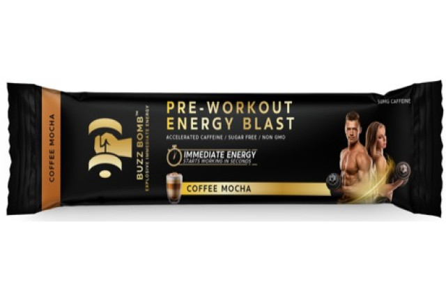 Featuring 50mg of caffeine and designed to support sustained energy and mental focus, BUZZ BOMB™ is bringing its unique delivery technology benefits to the multi-billion-dollar pre-workout market to help athletes and fitness enthusiasts maximize their performance potential. BUZZ BOMB™, offered in four flavors (Tropical Fruit, Mixed Berry, Peach Mango, and Coffee Mocha), provides nearly instant energy, in easy-to-use small sublingual packets, which can be taken right before and during work out as needed. Unlike pre-workout products that are mixed with water and taken well before a workout, BUZZ BOMB™ is sprinkled under the tongue-without any mixing with water or hassle--for immediate effect.