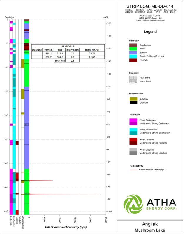 Atha Energy Final Assays From 2025 Angilak Exploration Program Confirm High-Grade Discoveries at KU and Mushroom Lake Targets - Grades up to 1.56% U3O8 and 1.10% U3O8, Respectively, and Expansion of Mineralization at the Lac 50 Deposit With Grades up to 1.47% U3O8
