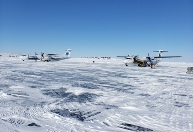 Mobilization is being completed via ATR planes (Photo 1 & 2) departing from Yellowknife, Northwest Territories, and Baker Lake and Rankin Inlet, Nunavut, and landing on Angilak's Winter landing strip;