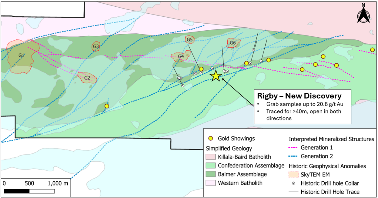 New Rigby showing returns up to 20.8 g/t Au from surface sampling