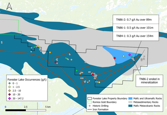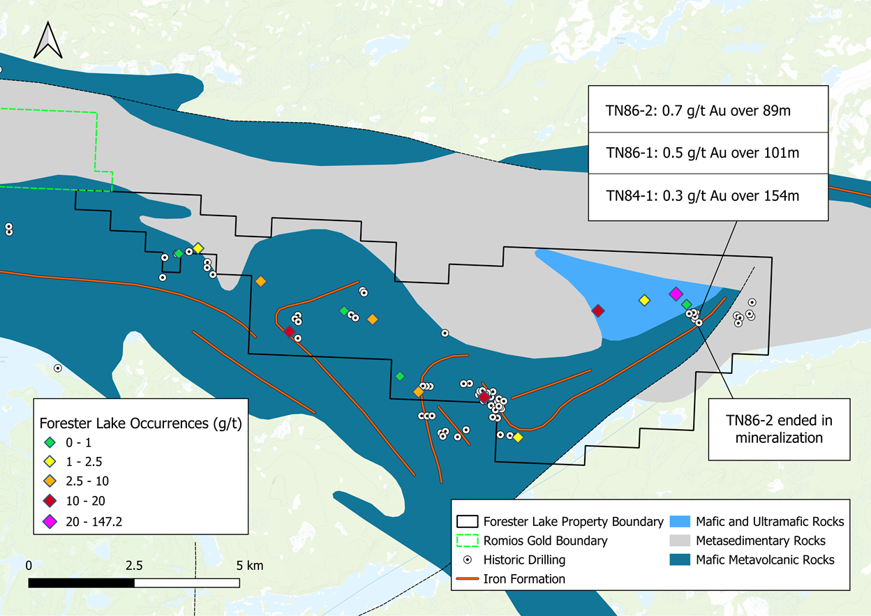 100% ownership of the 4,900-hectare Forester Gold Project, to be acquired via a low-cost, all-share deal with no known encumbrances other than the existing 2% net smelter return ("NSR") royalty, half of which is repurchaseable for $2 million, adjusted for inflation.