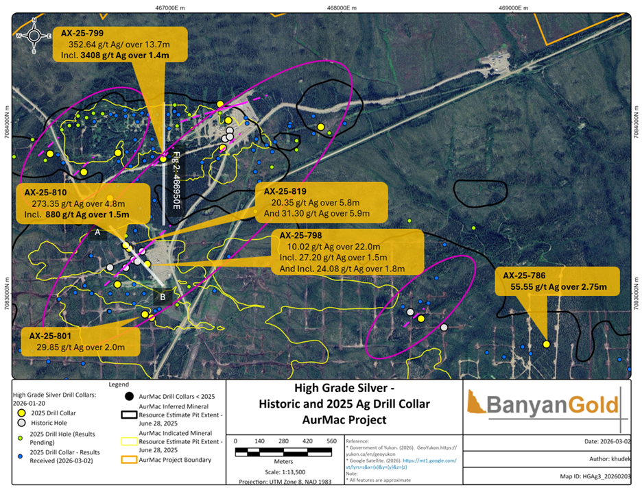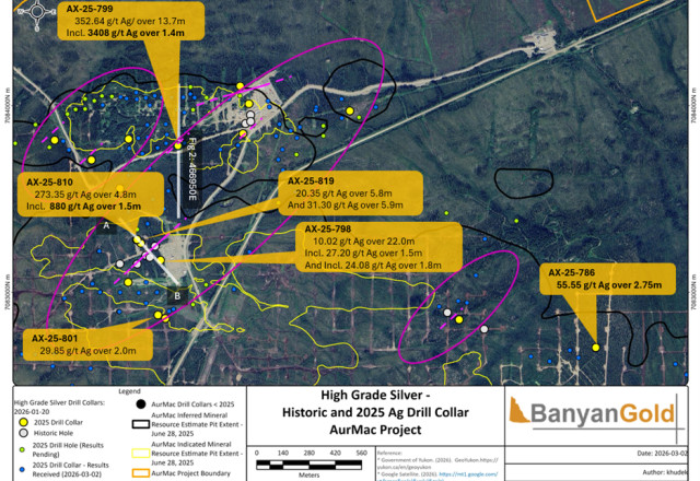 VANCOUVER, British Columbia, March 16, 2026 (Newswire.com) - Banyan Gold Corp. (the "Company" or "Banyan") (TSX-V:BYN)(OTCQB:BYAGF) is pleased to announce it has intersected several new, distinct high-grade silver ("Ag") veins at its AurMac Project ("AurMac"), Yukon, Canada.