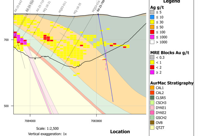 AX-25-819 - 20.35 g/t silver over 5.8m and 27.43 g/t silver over 7.7m