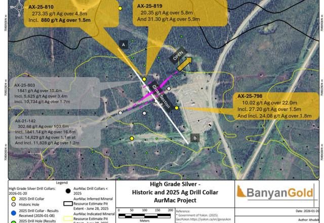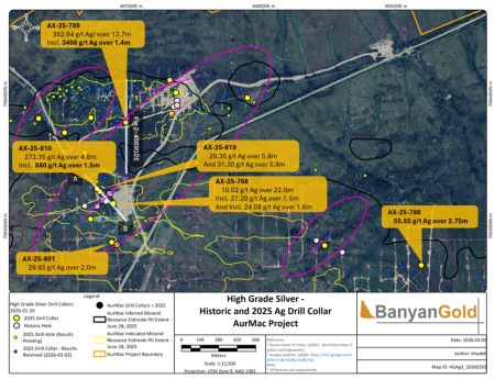 "The ongoing discovery of new high-grade Keno-style silver mineralization demonstrates that the AurMac project remains underexplored with high discovery potential," said Tara Christie, President and CEO. "Our plans for 2027 will provide meaningful catalysts for Banyan to continue to re-rate, with our upcoming MRE, PEA, and 40,000 m strategic drill program at AurMac, along with 10,000m focused on our regional targets."