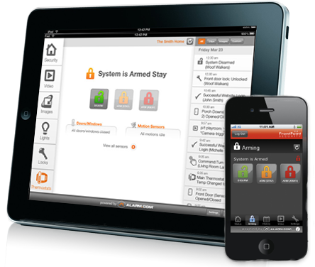 100% smartphone compatible : Free apps for all the major smartphones - Blackberry, Android and iOS - let customers control their system from their phone. Customers can arm or disarm it, receive text alerts, watch live video feeds and even deactivate the system remotely to let someone in. For those rare individuals who do not have a smartphone, FrontPoint systems are web enabled too, so that customers can also control the system from their browser.