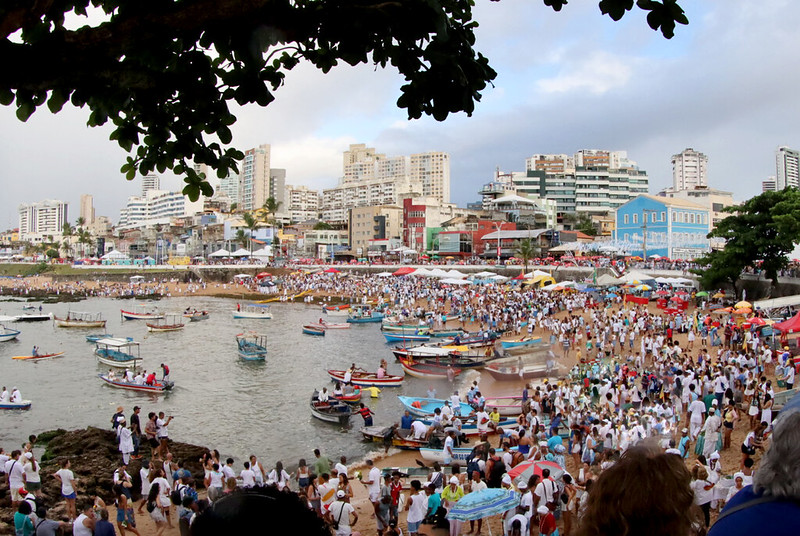 Recognized as part of Salvador's cultural heritage, the Iemanjá Festival is one of the most spiritual and visually stunning events in Brazil. Every February 2nd, locals and visitors gather in the Rio Vermelho neighborhood to offer gifts-especially flowers-to Iemanjá, the Afro-Brazilian goddess of the sea. These offerings are placed in boats that sail out into the ocean as a symbol of devotion and gratitude. The streets come alive with the sounds of samba, capoeira, and percussion, while crowds dressed in white celebrate in a unique fusion of faith, tradition, and rhythm.