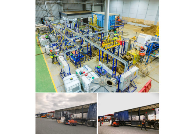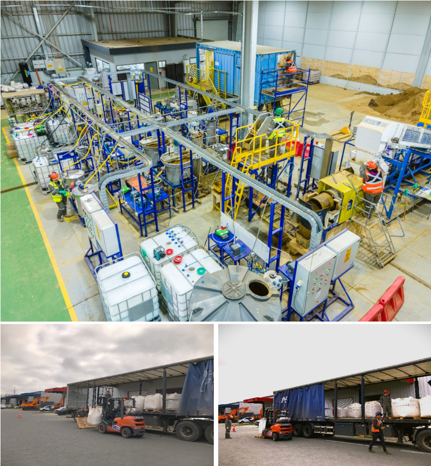 Fig. 1. Aclara's Pilot Plant in Concepcion, Chile and receipt of the ionic clay shipment from the Carina Module in Goiás, Brazil