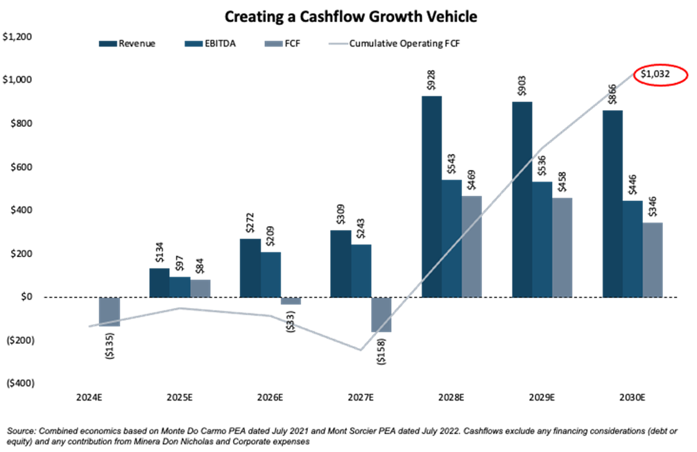 - Mont Sorcier is expectd to generate in excess of US$235m per annum in free cash flow over its 21-year life, which is expected to begin production in 2028 (with the potential for expansion & extension).