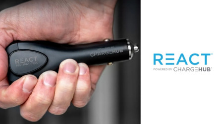 According to the company, React's built-in 2200mAh lithium battery uses what the brand describes as patented SmartSpeed Technology to charge phones up to 100 percent when disconnected from the vehicle. The brand states most smartphones can be charged to approximately 100 percent once from a full 2200mAh charge.