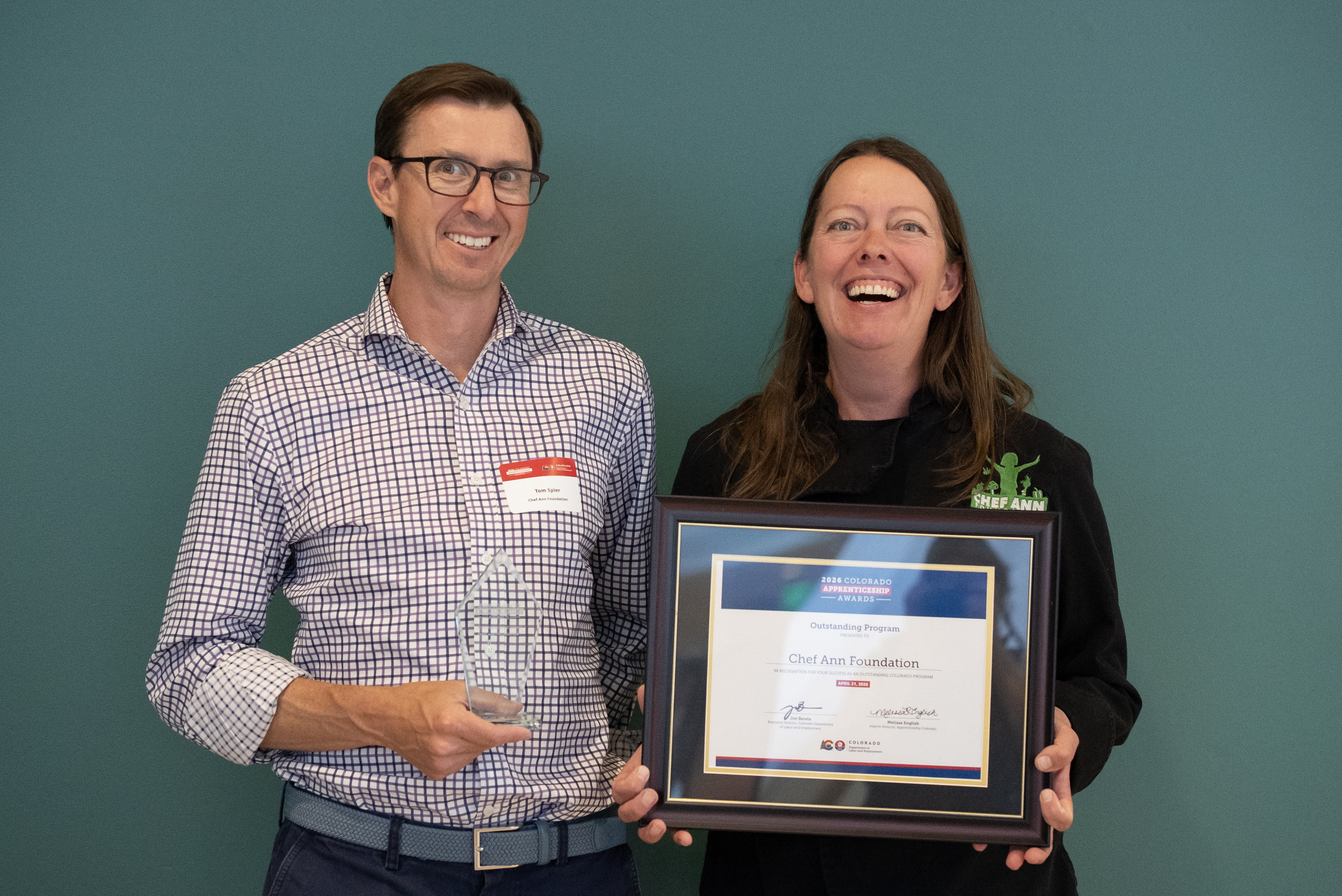 BOULDER, Colo., April 28, 2026 (Newswire.com) - The Chef Ann Foundation received an Outstanding Program Award this week from Apprenticeship Colorado, the State Apprenticeship Agency in the Colorado Department of Labor and Employment. The award recognizes the Chef Ann Foundation's Colorado Healthy School Food Pathway program for its exceptional contribution to Colorado's apprenticeship system.