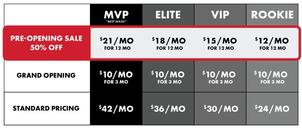 Customers can pay 1 penny to lock in 50% off any Membership for a full year, prior to the location opening. This offer is only available online for a limited time, and upon the site's grand opening, those who locked in the presale can activate their Membership and begin washing.