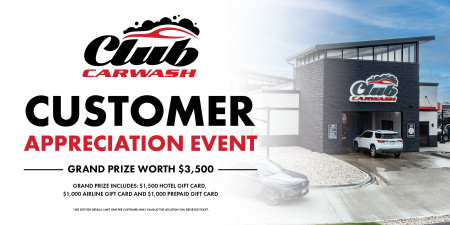 CLARKSVILLE, Tenn., September 3, 2025 (Newswire.com) - Club Car Wash, one of the fastest-growing express car wash brands in the country, is showing appreciation to its communities with special Customer Appreciation Events on Friday, September 6, 2025. Guests in Mesquite, TX; Lakewood, CO; Appleton, WI; and Clarksville, TN will have the chance to win a $3,500 vacation package, enjoy complimentary coffee cards, and receive free washes and other giveaways.