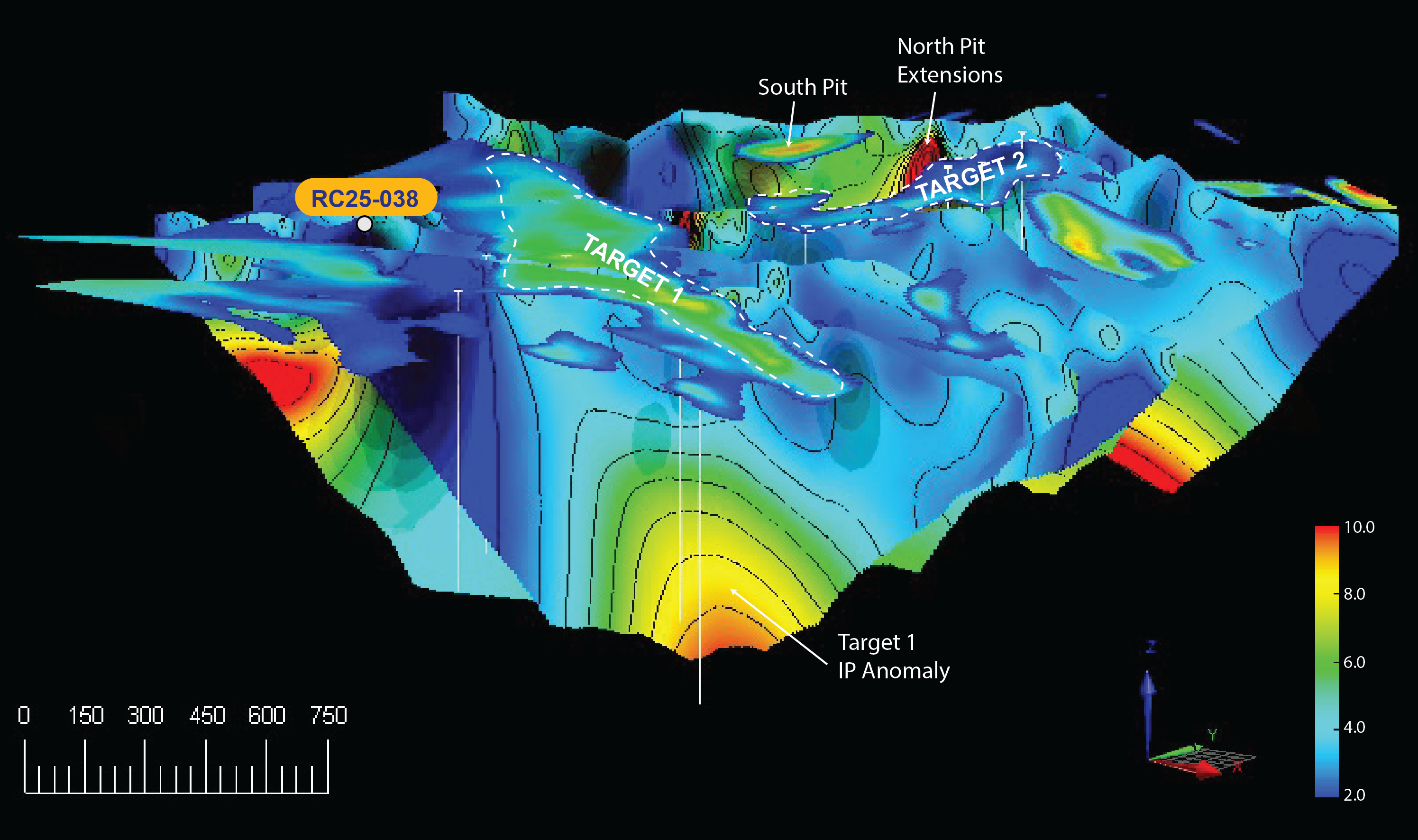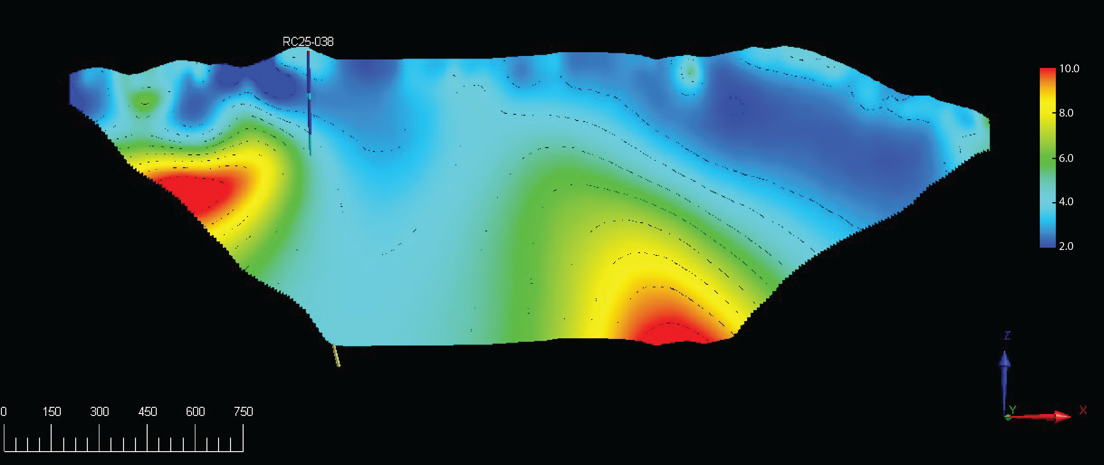 Importantly, the geochemical results from drill hole RC25-038 (see further in this announcement) and historical surface sampling have also been brought into this combined analysis, allowing the geophysical models to be ground-truthed against real geochemistry.