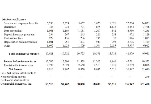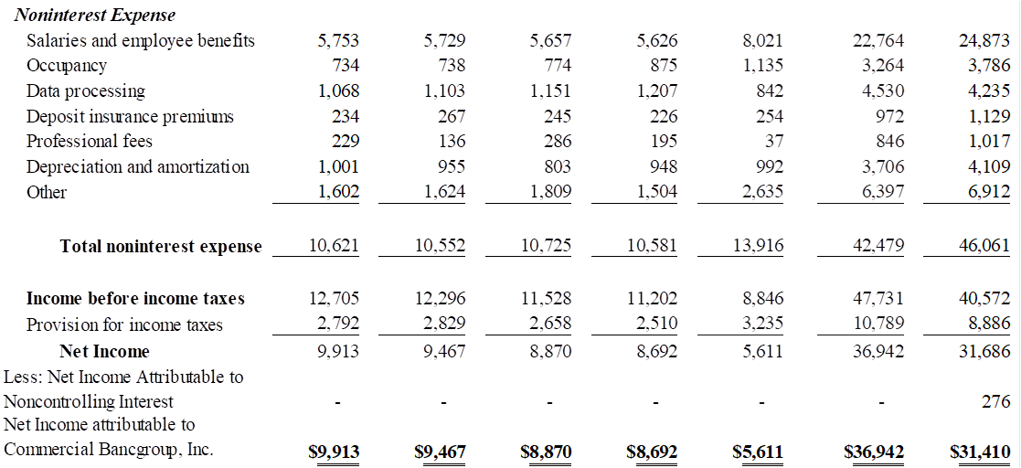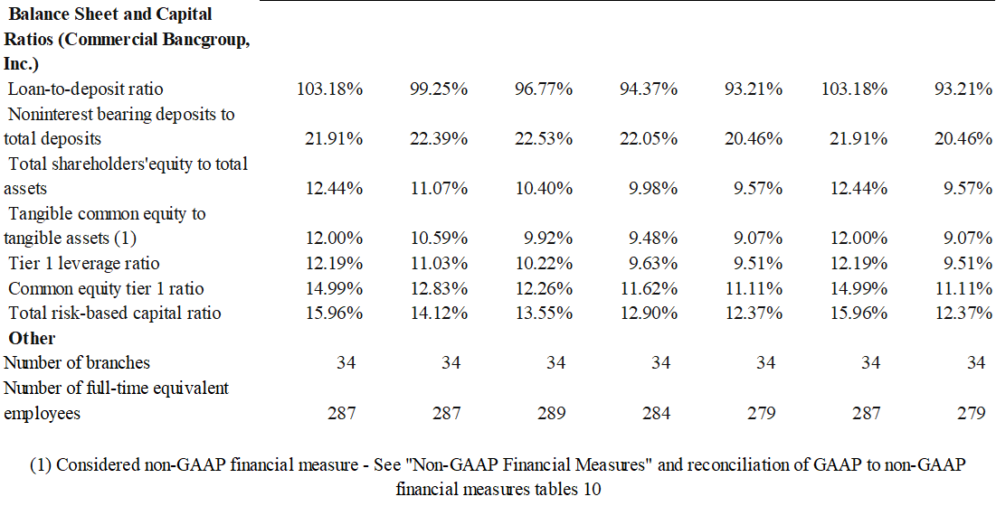 Net Income attributable to Commercial Bancgroup, Inc. | 9,913 | 9,467 | 8,870 | 8,692 | 5,611 | 36,942 | 31,410 | |||||||||||||||||||||