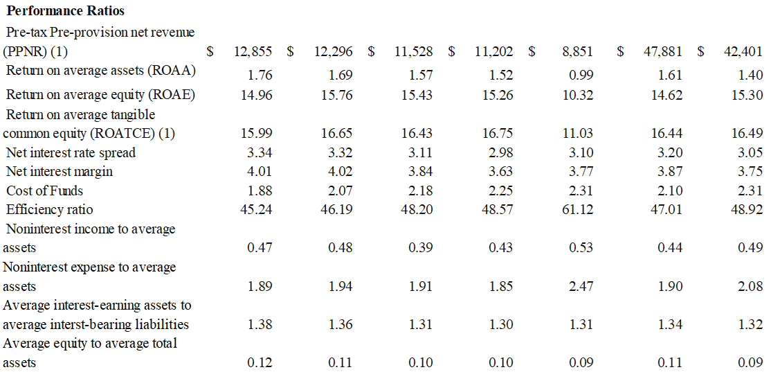 Pre-tax pre-provision return on average assets | 2.29 | % | 2.27 | % | 2.05 | % | 1.96 | % | 1.57 | % | 2.14 | % | 1.91 | % | ||||||||||||||