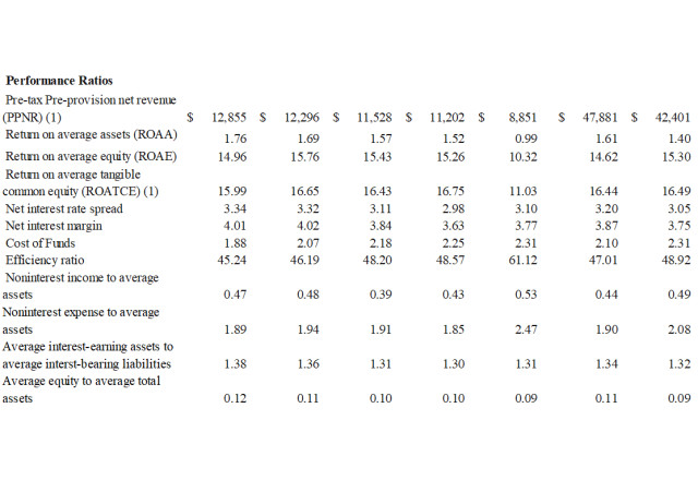 Return on average equity ("ROAE") of 15.26%; Return on average tangible common equity ("ROATCE") of 15.99%