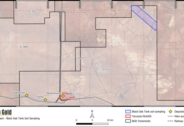 The ‘Black Oak Tank' prospect is located on the northern margin of the Lake Labyrinth Shear Zone, on Exploration Licence (EL) 6210 at the Company's South Australian Tarcoola Gold Project (Tarcoola).