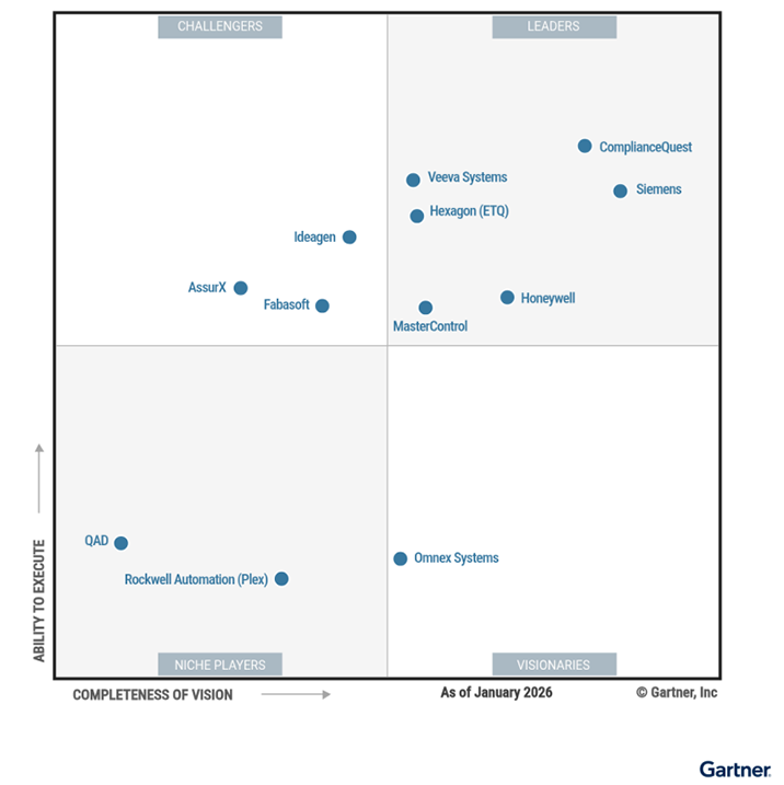 Source: Gartner, Magic Quadrant for Quality Management System Software, By Hope Warrilow, Kate Wagner, 20 January 2026