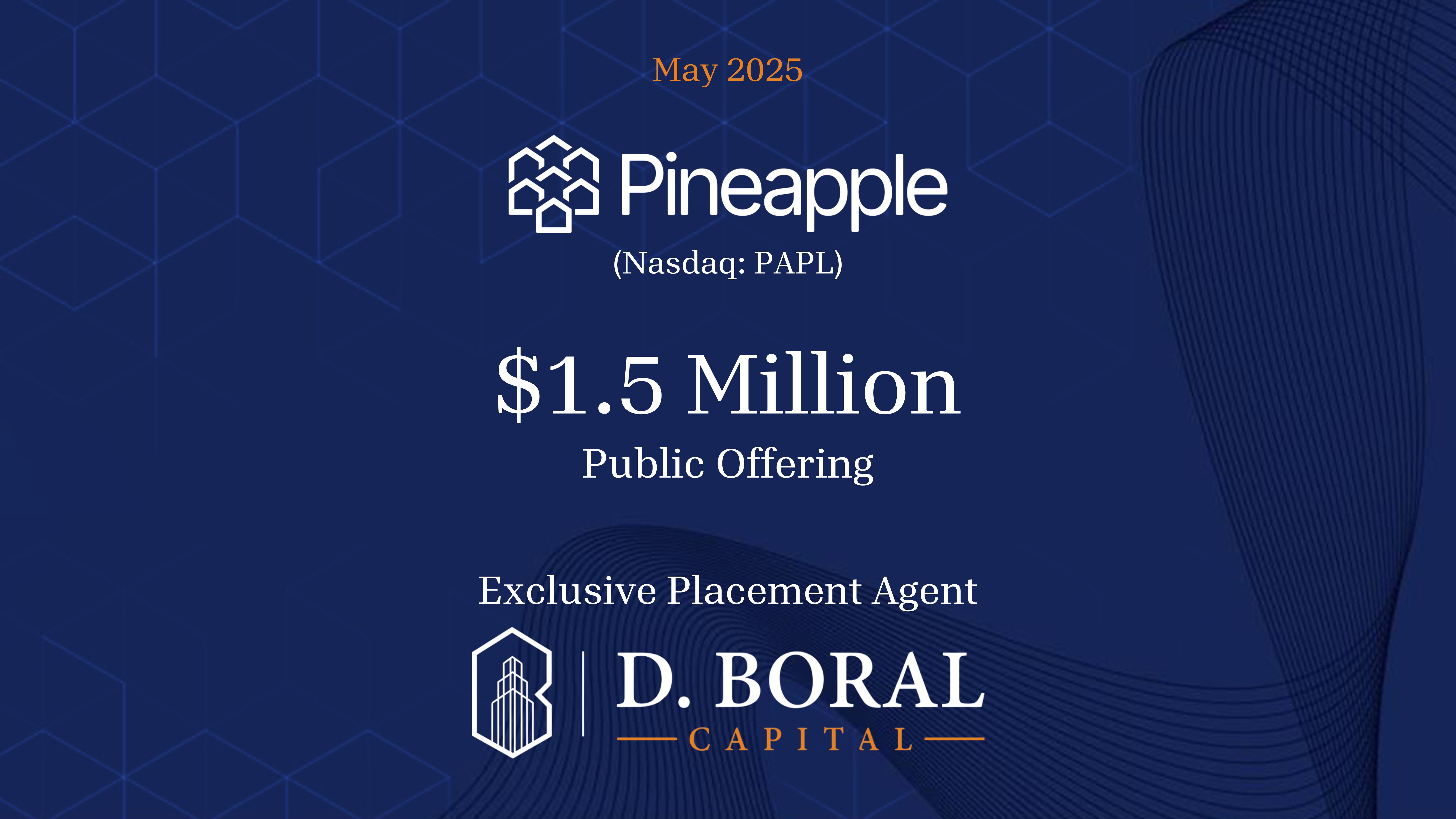 D. Boral Capital Acted as Exclusive Placement Agent to Pineapple Financial Inc. (NYSE:PAPL) in Connection with its $1.5 Million Public Offering
