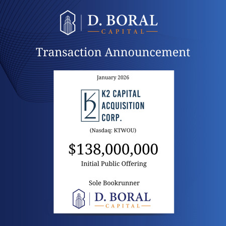 D. Boral Capital Acted as Sole Bookrunner to K2 Capital Acquisition Corporation (Nasdaq: KTWOU) in Connection with its $138,000,000 Initial Public Offering