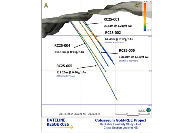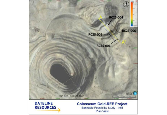 SAN BERNARDINO, Calif., December 15, 2025 (Newswire.com) - Dateline Resources Limited (ASX:DTR)(OTCQB:DTREF)(FSE:YE1) is pleased to announce further high-grade drilling results at its 100%-owned Colosseum Gold and Rare Earth Element (REE) Project in San Bernardino County, California. The results from a further twelve reverse circulation (RC) holes drilled below the South and North Pits have provided gold assay results that improve the continuity of mineralisation and in several instances, deliver grades that exceed the existing mineral resource grade.