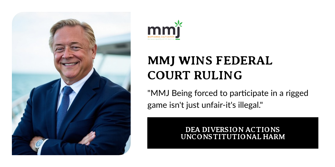 WASHINGTON, DC, April 1, 2025 (Newswire.com) - In a twist that even the most jaded D.C. insiders are calling "poetic justice," cannabis research giant MMJ International Holdings, MMJ BioPharma Cultivation and MMJ BioPharma Labs has delivered an April Fools' Day gut-punch to the Drug Enforcement Administration (DEA). Fresh off the DOJ's stunning admission that the DEA's administrative law judge (ALJ) system is unconstitutional, MMJ filed a suit for irreparable "unconstitutional harm" today, effectively demanding the courts declare the DEA's bureaucracy a legal dumpster fire.