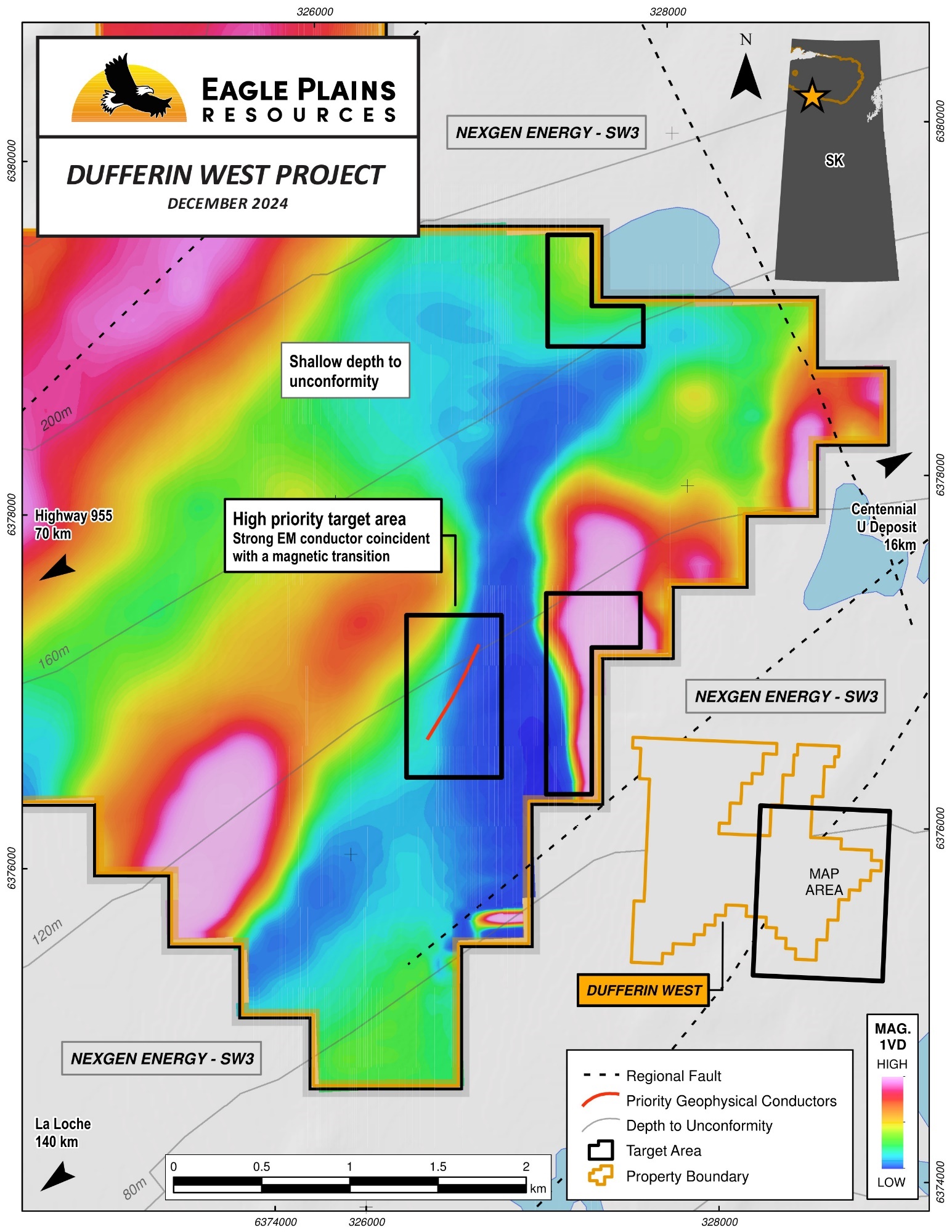 CRANBROOK, March 3, 2025 (Newswire.com) - Eagle Plains Resources Ltd. (TSXV:EPL), or ("Eagle Plains") is pleased to announce that it has received a permit for work, including diamond drilling, at Eagle Plains' 100% owned Dufferin West Property, from the Saskatchewan Ministry of Environment. Partner Refined Energy Corp (CSE:RUU)(OTC:RFMCF)(FRA:CWA0) ("Refined"))is focused on advancing three priority target areas as described in the January 7, 2025 news release. A drill program is being planned for the highest priority targets.