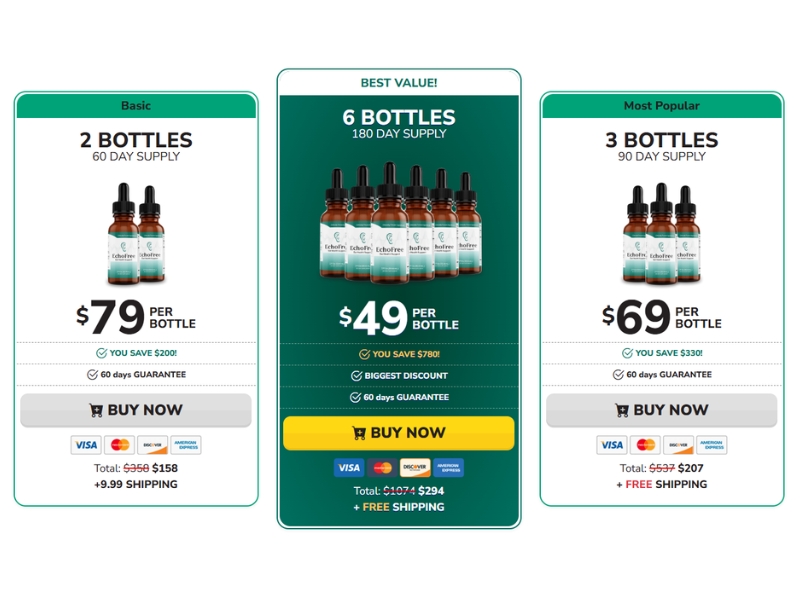 Overall, the pricing strategy of EchoFree reflects its quality formulation and the value it provides to users seeking effective tinnitus relief.