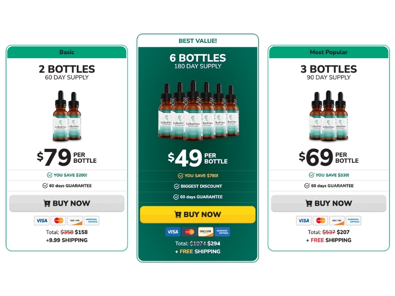 These options ensure that users can select a package that best fits their individual needs while maximizing their savings. EchoFree's pricing reflects a commitment to providing quality auditory health support at accessible rates.