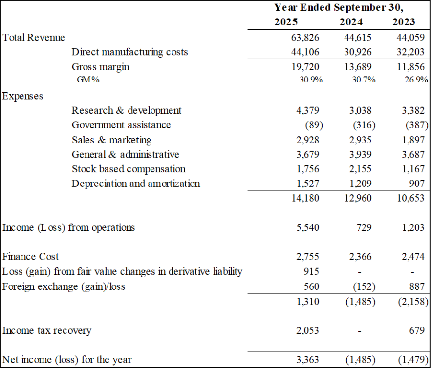 Revenue for FY 2025 was $63.8 million, compared to $44.6 million in the fiscal year ended September 30, 2024 ("FY 2024"). An increase of $19.2 million or 43% year over year.