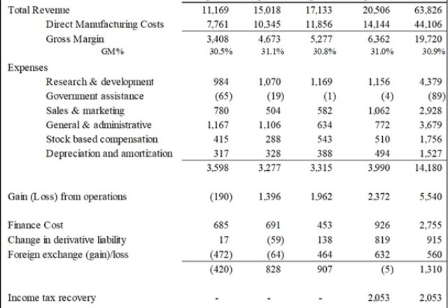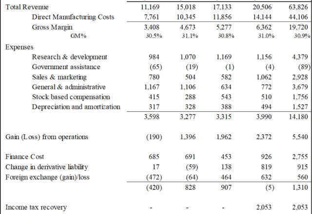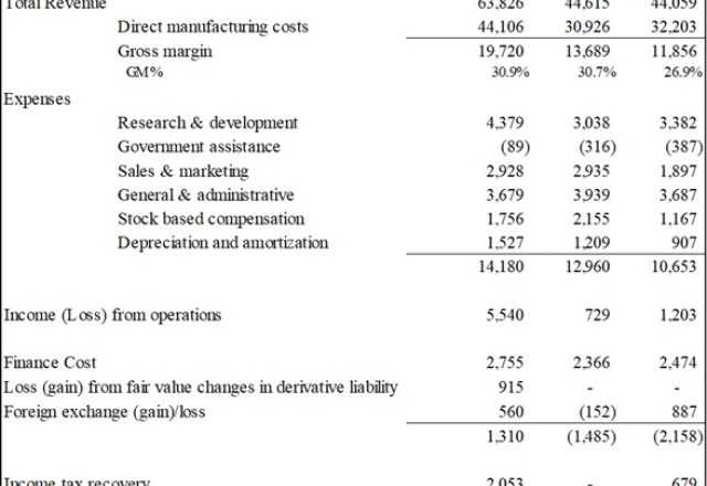 1 Non-IFRS Measure: Adjusted EBITDA is defined as income/(loss) from operations, plus stock-based compensation costs and depreciation and amortization costs. Adjusted EBITDA does not have a standardized meaning under IFRS. Therefore it is unlikely to be comparable to similar measures presented by other issuers. Management believes that certain investors and analysts use adjusted EBITDA to measure the performance of the business and is an accepted measure of financial performance in our industry. It is not a measure of financial performance under IFRS, and may not be defined and calculated in the same manner by other companies and should not be considered in isolation or as an alternative to IFRS measures. The most directly comparable measure to Adjusted EBITDA calculated in accordance with IFRS is income (loss) from operations.