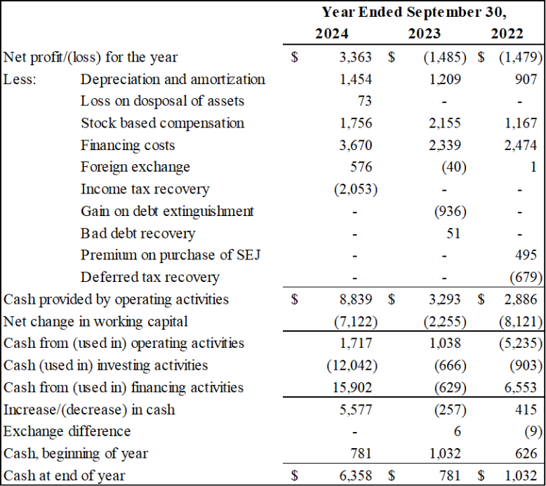The Company generated positive cash from operations of $1.7 million for FY 2025, compared to cash generated from operations of $1.0 million in FY 2024. Cash generated from operating activities before net changes in working capital was $8.8 million for FY2025 compared to $3.3 million for FY 2024. A significant improvement in operating cash flow of $5.5 million.