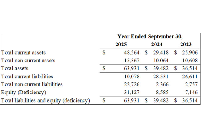 Selected Annual Financial Information for the Years ended September 30, 2025, 2024 and 2023: