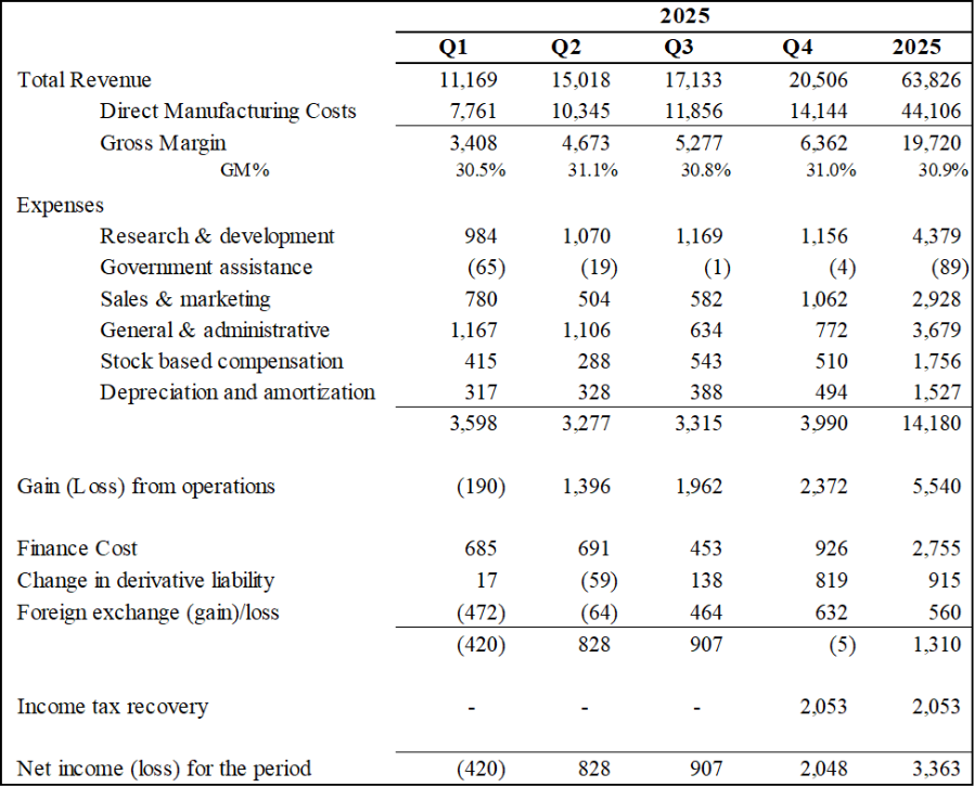"The year-end cash balance plus funds raised through a subsequent equity offering, combined with our new $25 million BMO facility and $51 million EXIM loan, significantly strengthens our financial position. This diversified capital base supports organic growth, our expanding recurring revenue programs including energy-as-a-service and aftermarket services, and our U.S. manufacturing ramp-up which is expected to expand our market footprint within the material handling sector.