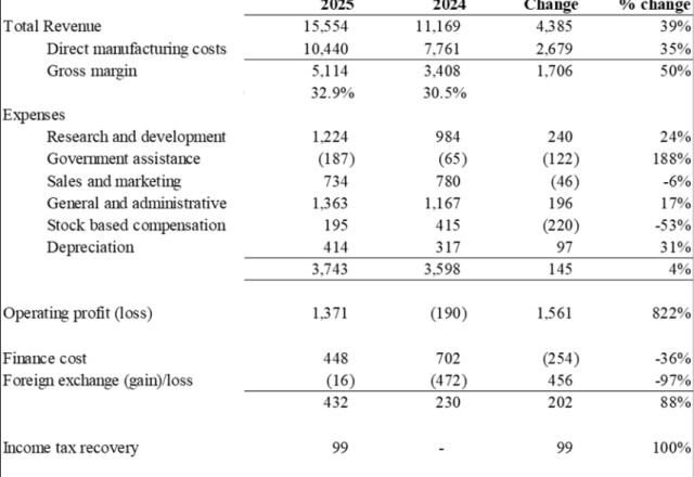 This press release contains forward-looking statements, including statements that relate to, among other things, revenue, purchase orders, revenue guidance of more than 30% revenue growth (exceeding $83 million) over FY 2025 in FY 2026, order growth and customer demand in FY 2026, mass production schedules, , the Company's ability to start production of cells at the Jamestown, New York facility by end of CY 2026, future business opportunities, use of proceeds, ability to deliver to customer requirements and revenue growth forecasts for the fiscal year ending September 30, 2026. Forward-looking statements can generally, but not always, be identified by the use of words such as "may", "will", "could", "should", "would", "likely", "possible", "expect", "intend", "estimate", "anticipate", "believe", "plan", "objective" and "continue" (or the negative thereof) and words and expressions of similar import. Although the Company believes that the expectations reflected in such forward-looking statements are reasonable, assumptions and analyses made by the Company in light of the experience and perception of historical trends, current conditions and expected future developments and other factors it believes are appropriate are necessarily applied in making forward looking statements and such statements are subject to risks and uncertainties, therefore actual results may differ materially from those expressed or implied in such statements and undue reliance should not be placed on such statements. Material assumptions made in disclosing the forward-looking statements included in the news release include, but are not limited to assumptions that the Company's customers will deploy its products in accordance with communicated timing and volumes, that the Company's customers will complete new distribution centers in accordance with communicated expectations, intentions and plans, the sum of anticipated new orders in FY 2026 based on customers' historical patterns and additional demand communicated to the Company and its partners but not yet provided as a purchase order with the Company's current firm purchase order backlog totaling approximately $100-125 million, a discount of approximately 25% used in the revenue modeling applied to the overall expected order pipeline to account for potential delays in customer orders, expected decreases in input and material costs combined with stable selling prices in FY 2026, and a stable political climate with respect to exports from Canada to the United States, the start up time for manufacturing in Jamestown NY is estimated towards the end of FY 2026 or first quarter of FY 2027, the ability to leverage IRA45X credits, the ability to receive incentives from the state of New York, the ability to improve margins from domestic manufacturing, and the ability to attract additional customers through domestic manufacturing. Factors that could cause actual results to differ materially from expectations include but are not limited to customers not placing orders roughly in accordance with historical ordering patterns and communicated intentions resulting in annual revenue growth in FY 2026 of more than 30% over FY 2025 (exceeding $83 million), the predictability of sales and success of the Company's products in verticals other than material handling, the imposition of a tariff regime on Canadian exports by the United States, macroeconomic effects on the Company and its business and on the lithium battery industry generally, the Company's liquidity and cash availability in excess of its operational requirements, and the ability to generate and sustain sales orders. Additional information about material factors that could cause actual results to differ materially from expectations and about material factors or assumptions applied in making forward-looking statements may be found in the Company's Annual Information Form for the year ended September 30, 2025 under "Risk Factors", in the Company's base shelf prospectus dated September 17, 2024, and in the Company's most recent annual and interim Management's Discussion and Analysis under "Qualitative And Quantitative Disclosures about Risk and Uncertainties" as well as in other public disclosure documents filed with Canadian securities regulatory authorities. The Company does not undertake any obligation to update publicly or to revise any of the forward-looking statements contained in this document, whether as a result of new information, future events or otherwise, except as required by law.