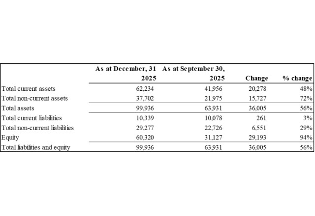 Selected Annual Financial Information for the Quarter ended December 31, 2025 and 2024: