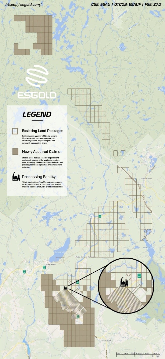 VANCOUVER, British Columbia, February 5, 2026 (Newswire.com) - ESGold Corp. (CSE:ESAU)(OTCQB:ESAUF)(FSE:Z7D) ("ESGold" or the "Company") is pleased to announce that it has staked an additional 144 mining claims totaling approximately 7,668 hectares in and around its Montauban project, significantly increasing the size of its Montauban land position in Québec.