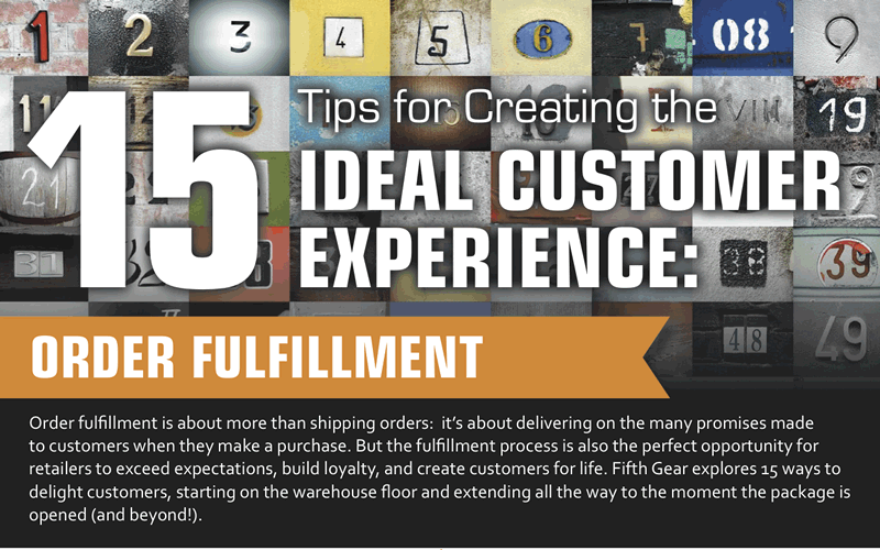 Online, September 8, 2013 (Newswire.com) - Fifth Gear, an Inc. 5000 provider of fulfillment services, e-commerce management, order fulfillment services, and internet marketing, has created and released an infographic that provides fifteen essential tips for companies to consider when creating the ideal customer experience. The infographic explores the ways in which a company can delight customers, from the warehouse to delivery.