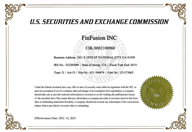 NEW YORK, January 9, 2026 (Newswire.com) - Recent developments surrounding FinFusion Exchange have drawn market attention as publicly available information shows that the company's relevant corporate records are now included within the disclosure framework of the U.S. Securities and Exchange Commission. This development places the platform's corporate governance and information transparency within a clearly defined U.S. regulatory context.