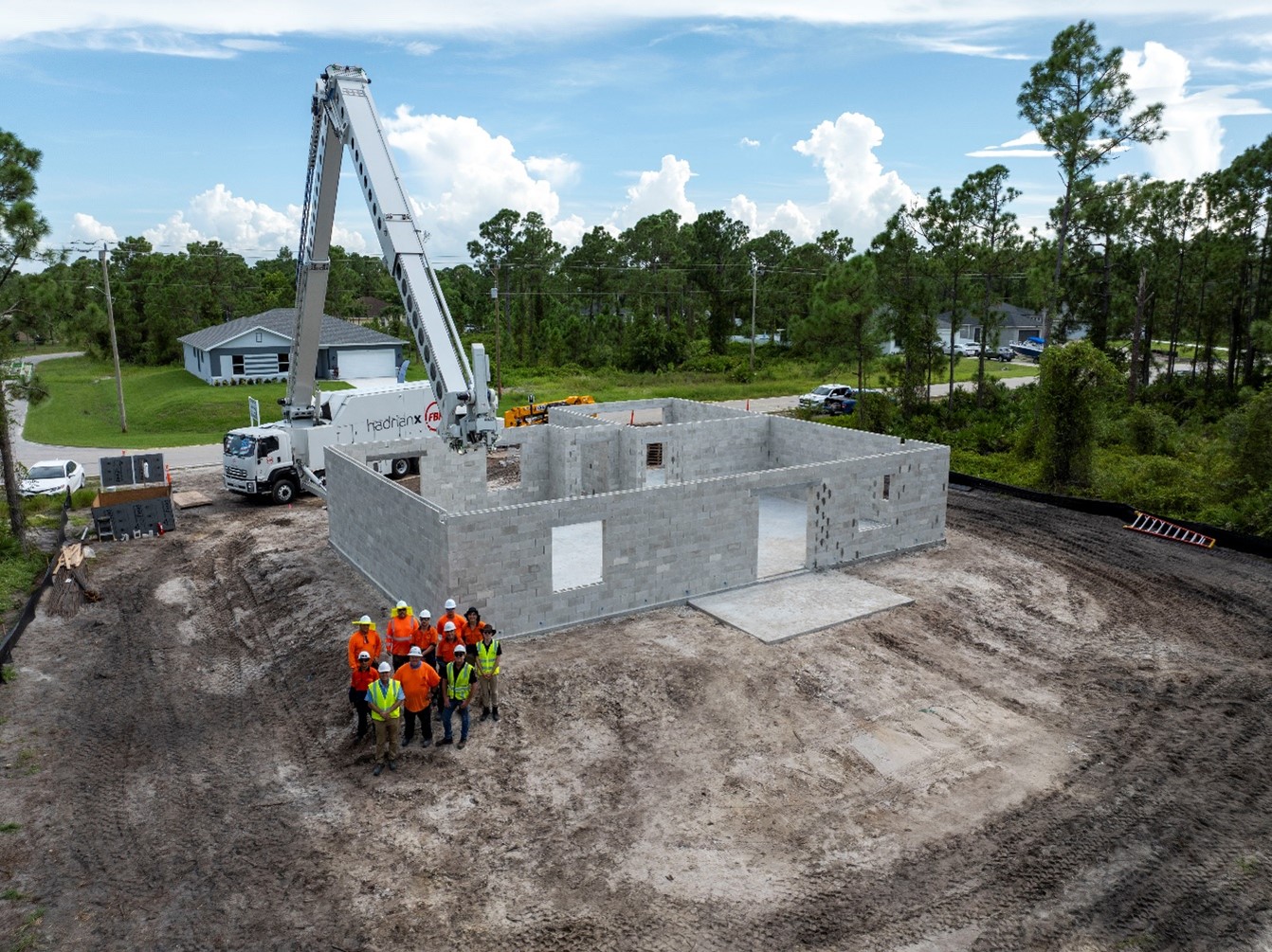 The build was completed with Florida builder New Century USA, one of the participating builders in the US Demonstration Program which will include builders across a spectrum of size, volume and style of homes to demonstrate the versatility and adaptability of the Hadrian X®. FBR will build the walls of four more homes for New Century USA in the Demonstration Program.