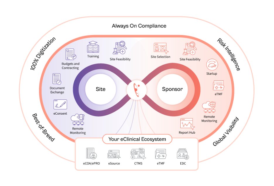 AI-enabled contracting and document exchange between eTMF and eISF automates SSU document exchange, while generative AI redlining shortens contract review cycles, compares terms in seconds, and dramatically reduces time to activation.
