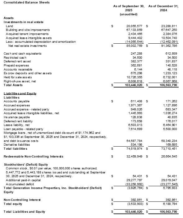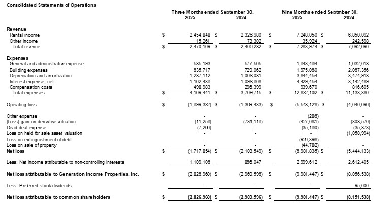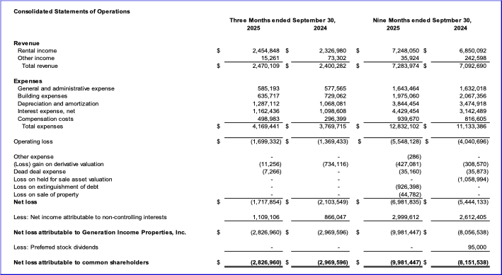 Generation Income Properties Announces Q3 2025 Financial and Operating Results